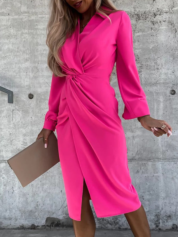 Solid color cross shirt dress for women