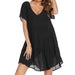 The Solid Color Dark V-Neck Translucent Smock Dress delivers a polished look while remaining comfortable and functional.