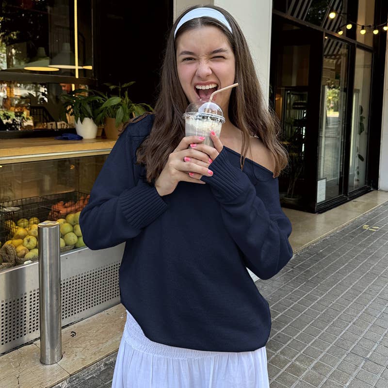 With a clean silhouette and easy wearability, the Solid Color Diagonal Shoulder Pullover Sweater fits seamlessly into your rotation.