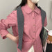 Designed to complement everyday outfits, the Solid Color Doll Collar Washed Cotton Shirt brings a refined yet wearable feel.