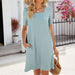Solid Color Dress With Square Neck Pocket