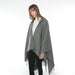 The Solid Color Fringed Hooded Blanket Shawl Cloak adds a refined touch with its clean and modern silhouette.