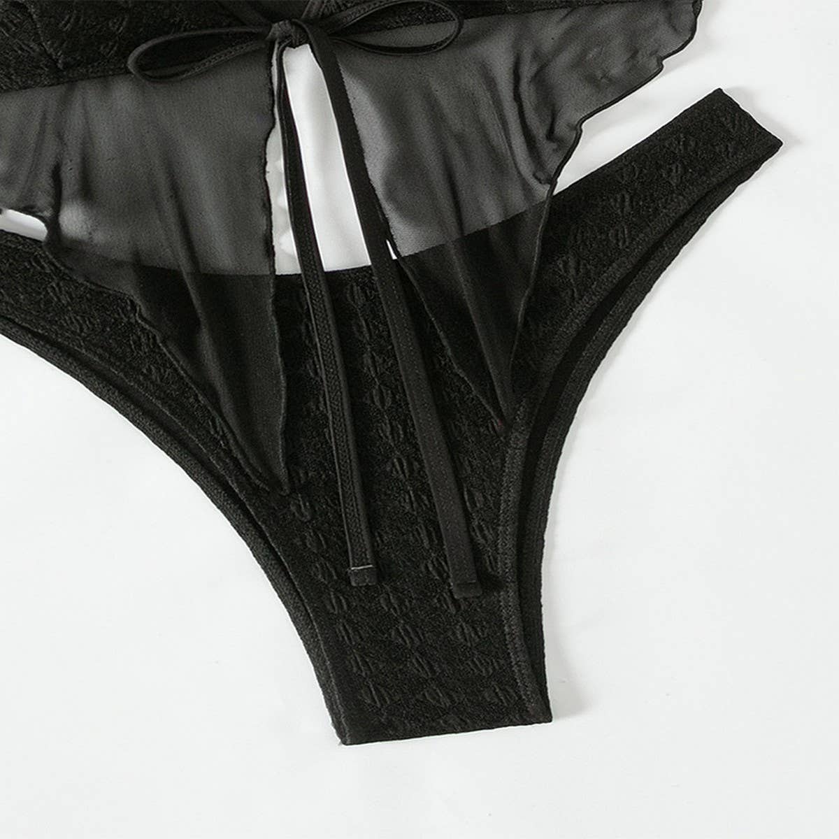 The Solid Color Halter Neck Bikini Four Piece Swimsuit adds a refined touch with its clean and modern silhouette.