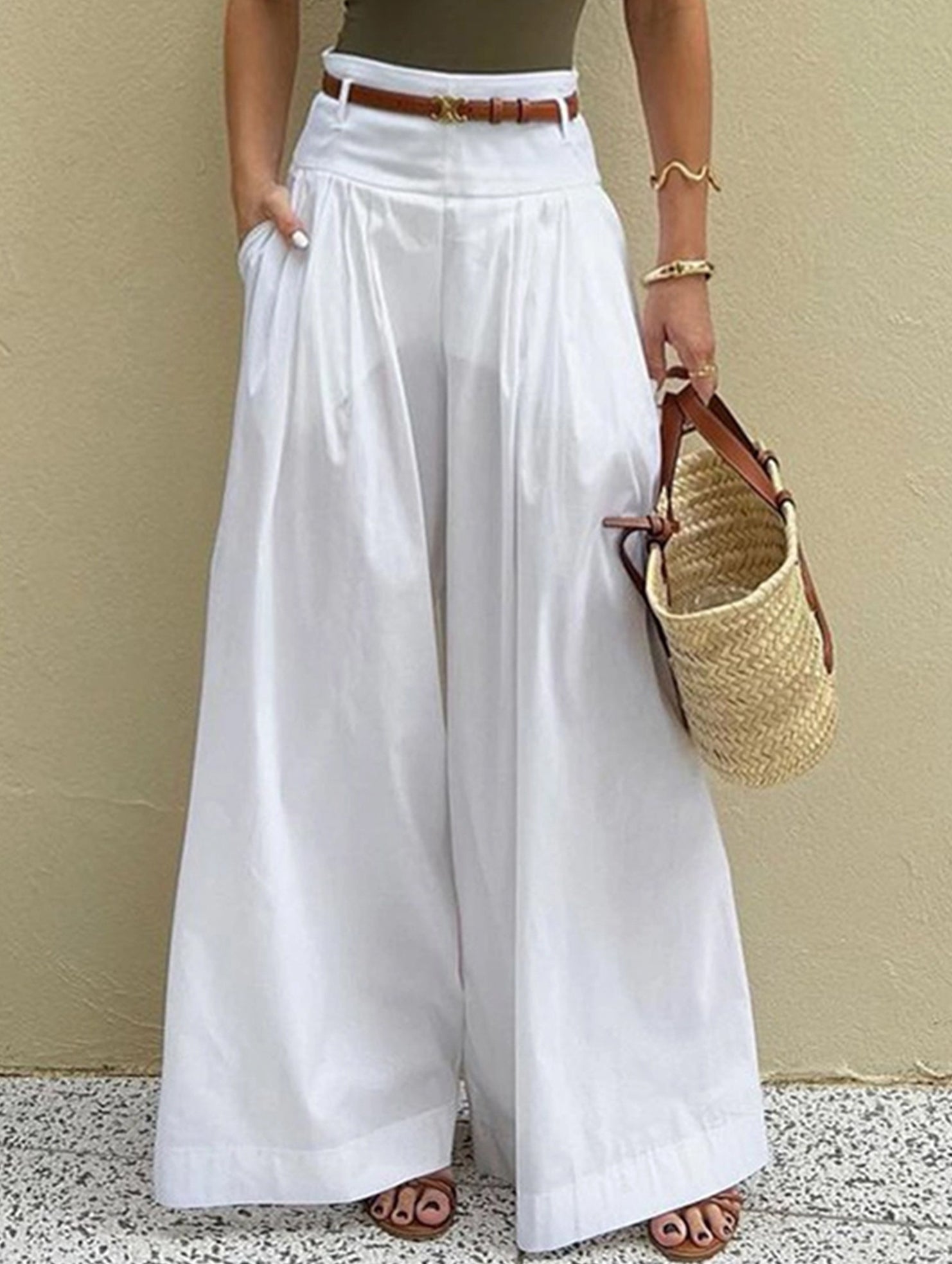 High-Waisted Wide-Leg Pants ??Solid Color, Casual & Chic, S?“XL