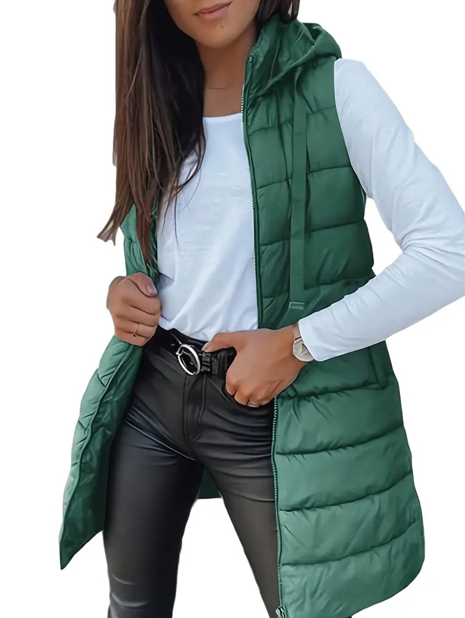Solid color hooded zip-up cotton vest_CWOCASL00104