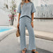 Solid Color Knit Short Sleeve Top And Pants Suit_Cwstb0513