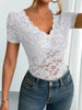 Solid-Color Lace V-Neck Short Sleeve Lace T-Shirt