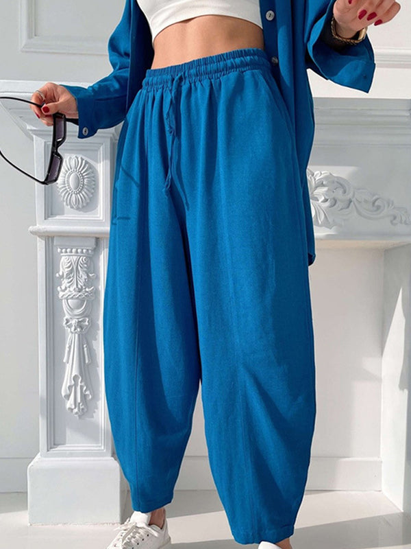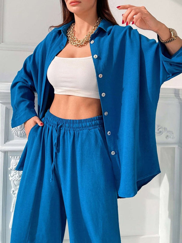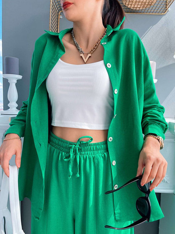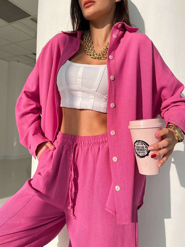 Solid color lapel long-sleeved shirt suit