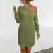 The Solid Color Long-Sleeved Off-Shoulder Knit Dress delivers a polished look while remaining comfortable and functional.