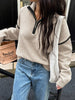 Solid-Color Long-Sleeved Semi-Zipper Sweater