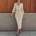 A versatile addition to your wardrobe, the Solid Color Long V-Neck Lace-Up Lapel Dress works across multiple occasions.