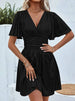 Solid-Color Lotus Leaf Sleeved Pull-Down Dress