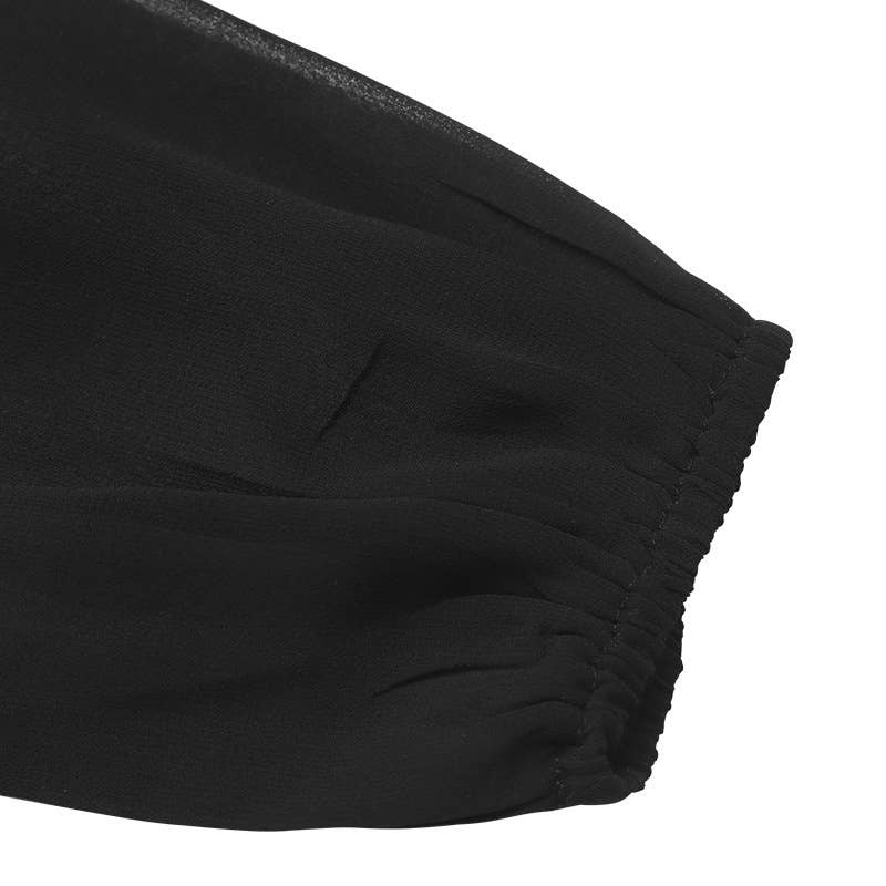 Solid-Color Mesh Spliced V-Neck Jumpsuit
