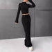 The Solid Color Pants Long-Sleeved Top Two-Piece Set delivers a polished look while remaining comfortable and functional.
