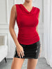 Solid-Color Pendant Neck Side-Pleated T-Shirt