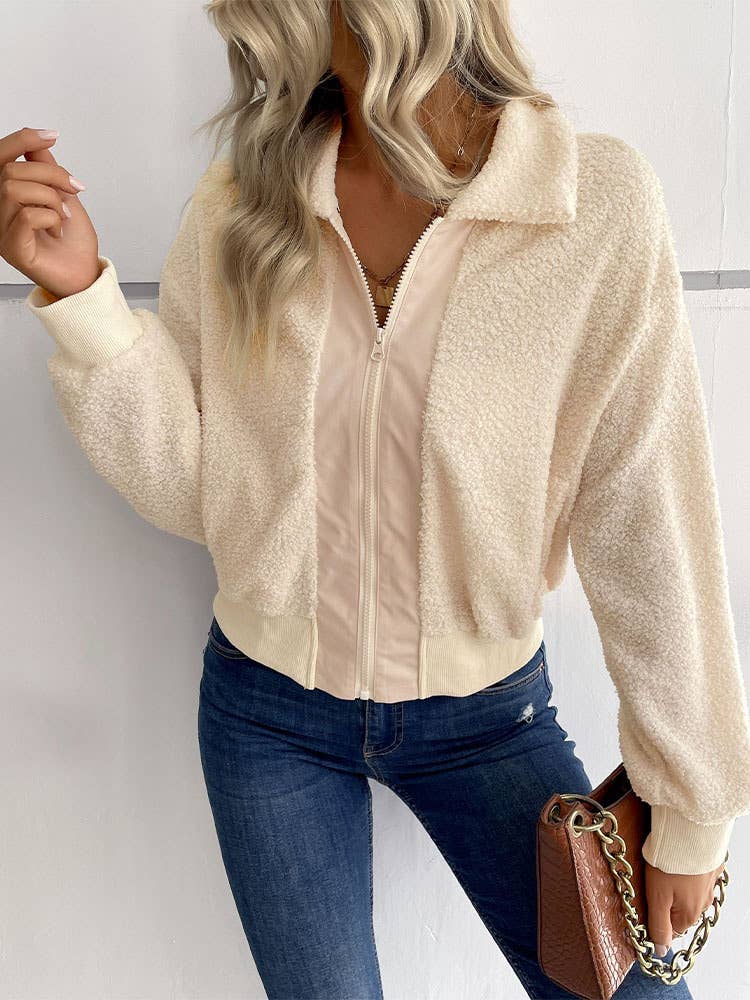 Solid-Color Polar Fleece Lapel Zipper Jacket