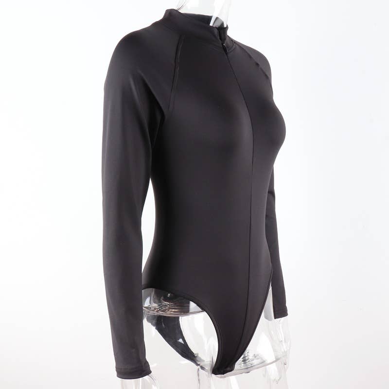 Solid-Color Round-Neck Semi-Cardigan Jumpsuit