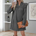 The Solid-Color Ruffled Loose Stand-Up Collar Dress delivers a polished look while remaining comfortable and functional.