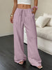 Solid-Color Textured Drawstring Wide-Leg Pants