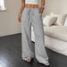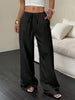 The Solid-Color Textured Drawstring Wide-Leg Pants delivers a polished look while remaining comfortable and functional.