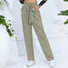 Solid Color Tie Waist High Rise Slim Fit Pants