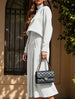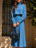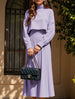 xSolid color turtleneck sweatshirt + long elastic skirt