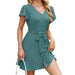 The Solid Color V-Neck Belt Button-Up Dress delivers a polished look while remaining comfortable and functional.