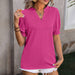 This Solid Color V Neck Ear Of Wheat Short Sleeved Top_Cwtts0898 balances modern styling with practical comfort for daily wear.