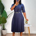 The Solid Color V Neck Fashionable Pleated Dress adds a refined touch with its clean and modern silhouette.