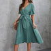 Solid Color V-Neck High-Waisted Mid-Length Dress