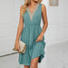 Solid Color V-Neck Lace Patchwork Pocket Dress