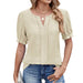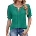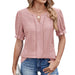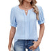 Solid Color V-Neck Puffed Sleeve Jacquard T-Shirt