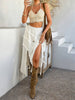 Solid Color Waist Draw-In Mid-Length Split Skirt
