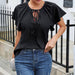 This Solid Eyelet Tie Neck Flutter Sleeve Top balances modern styling with practical comfort for daily wear.
