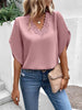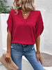 This Solid Lace V-Neck Flared Sleeves Loose Blouse balances modern styling with practical comfort for daily wear.