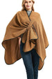 Designed for everyday use, the Solid Leather Edge Slit Cozy Shawl Capes offers fluid movement and timeless appeal.
