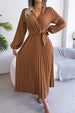 Solid V Neck Pleated Long Skirt_Cwdmd0762