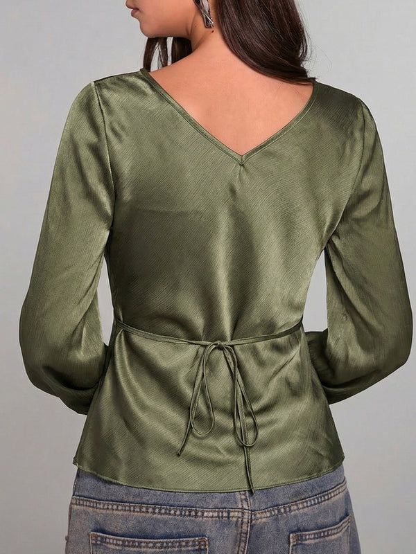 Designed to complement everyday outfits, the Solid V Neck Pullover Blouse brings a refined yet wearable feel.