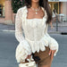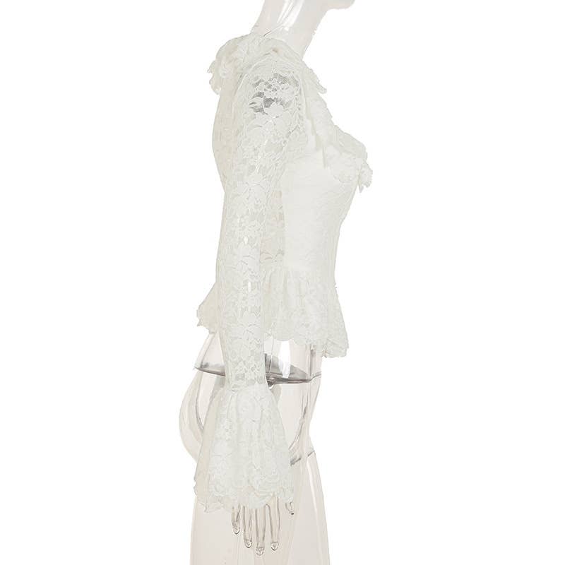 A versatile addition to your wardrobe, the Square Collar Flared Sleeve Lace Shirt Of Top works across multiple occasions.