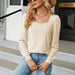 Square Collar Jacquard Long-Sleeved Loose T-Shirt