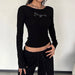 Square Collar Long Sleeve Slim-Fit T-Shirt