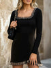 Square Neck Lace Hem Short Knit Dress