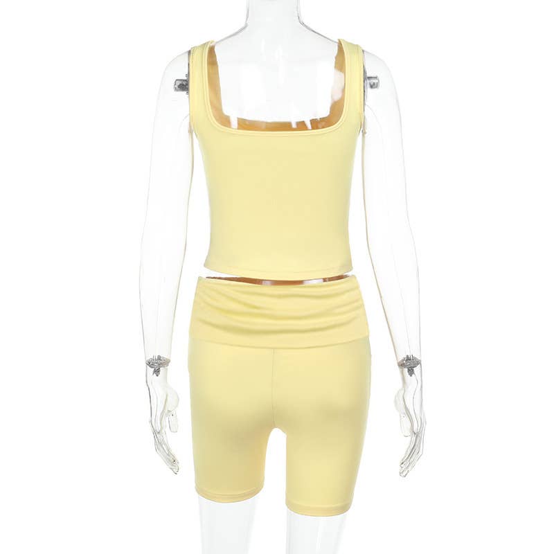 With a clean silhouette and easy wearability, the Square Neck Pleated Trendy Crop Top Set fits seamlessly into your rotation.