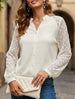 Stand collar pleated lace solid color shirt