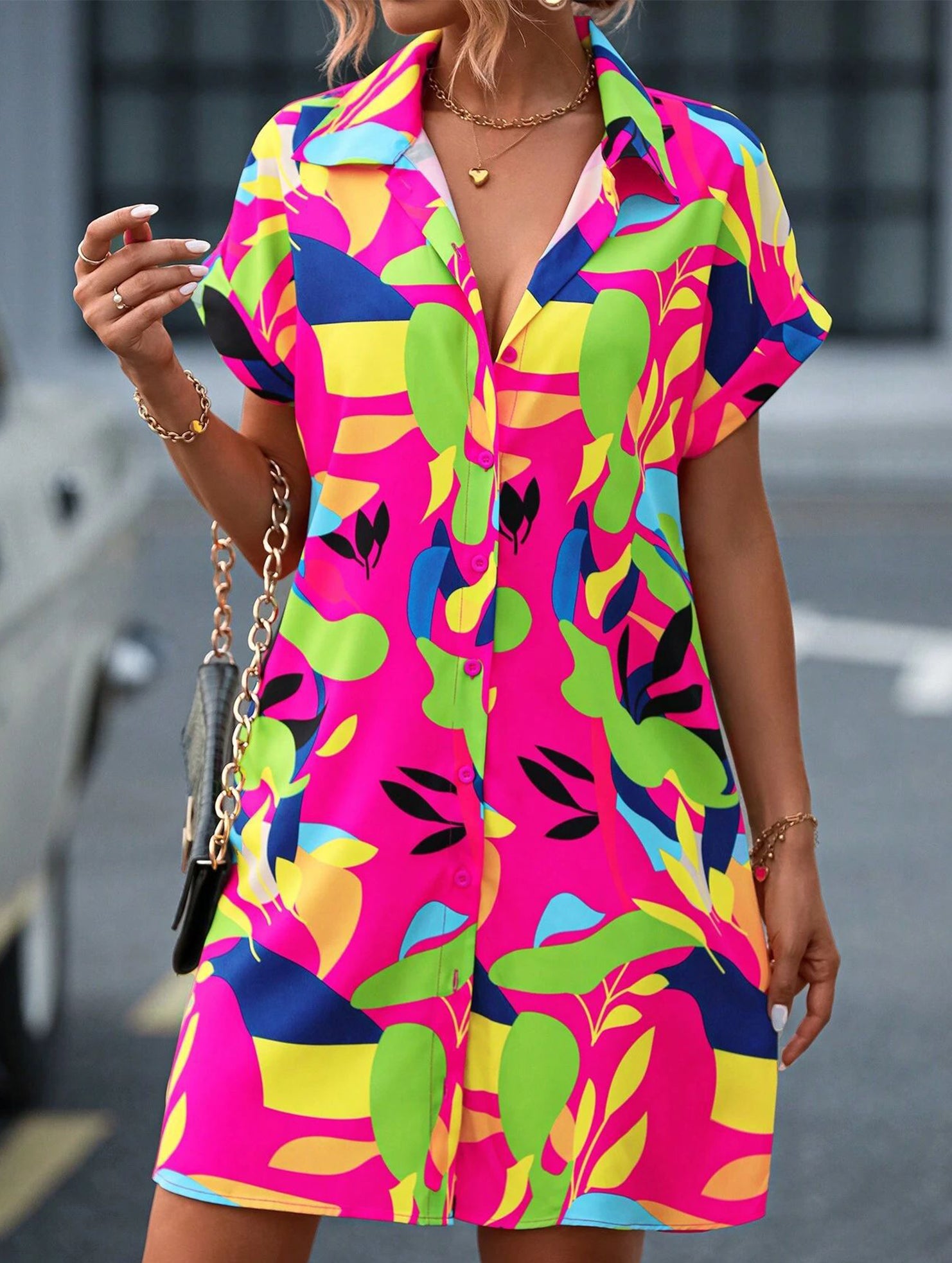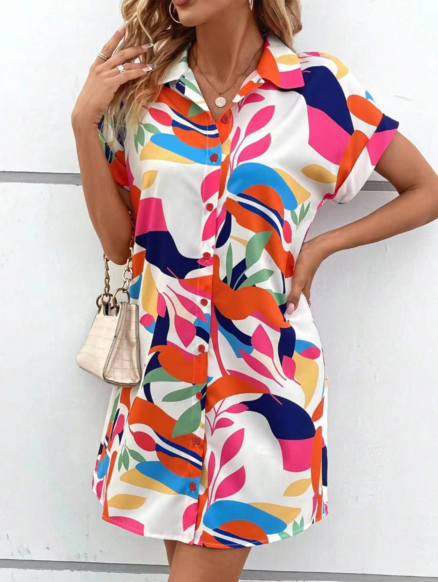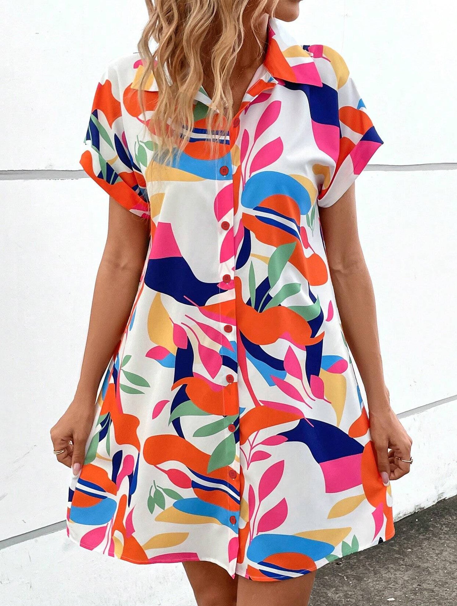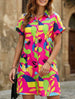 Street Style printing A-line skirt button dress