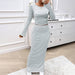 The Striped Knitted Long-Sleeved Half-Skirt Suit delivers a polished look while remaining comfortable and functional.