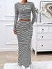 Striped Knitted Long-Sleeved Half-Skirt Suit