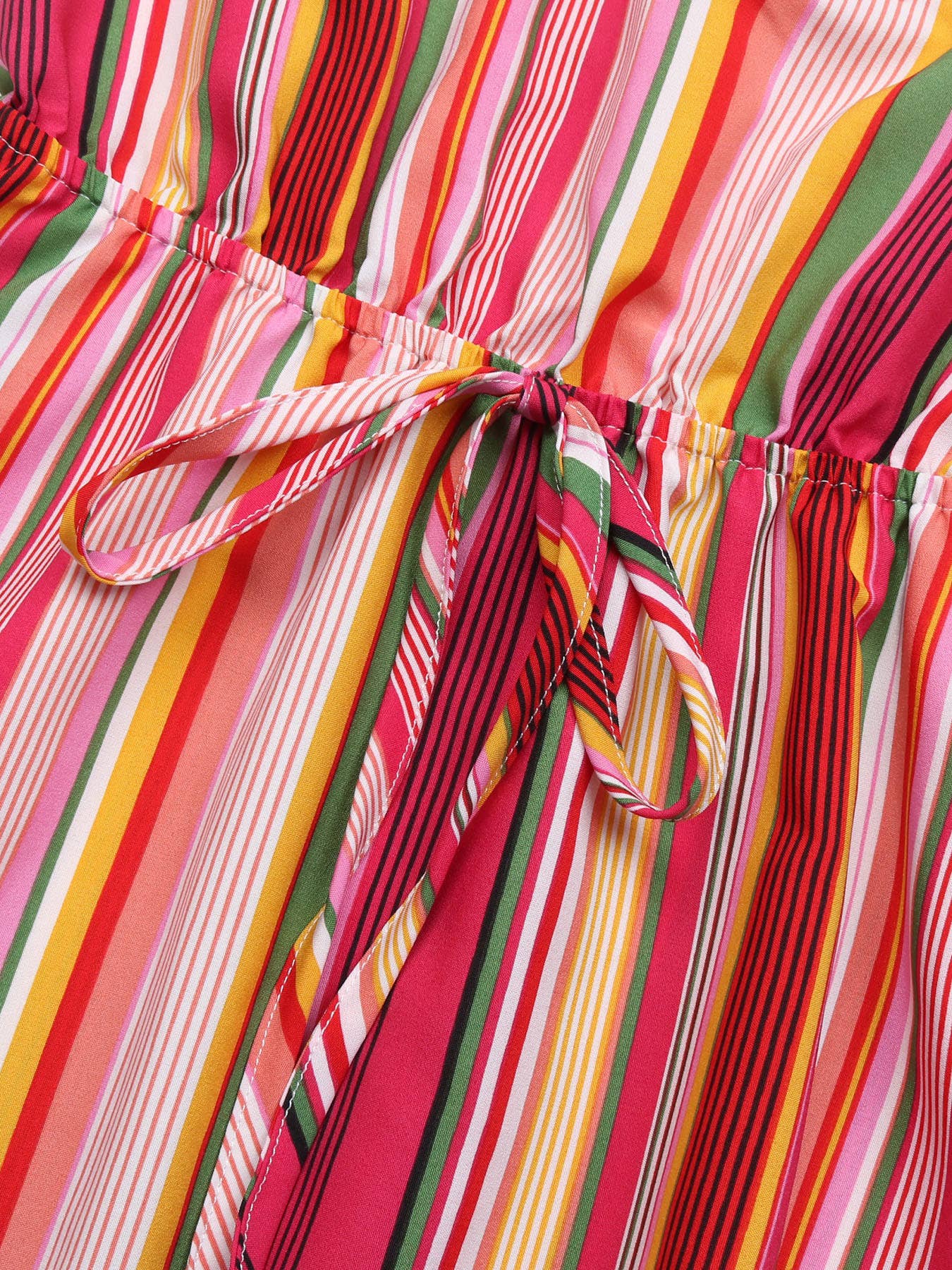 This Striped Print Dress With Sleeveless Lace Halter balances modern styling with practical comfort for daily wear.