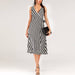 A versatile addition to your wardrobe, the Striped Sleeveless Dress With Lace-Up V-Neck works across multiple occasions.