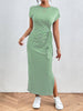 With a clean silhouette and easy wearability, the Striped Slim-Fit Waist Slimming Round Neck Dress fits seamlessly into your rotation.